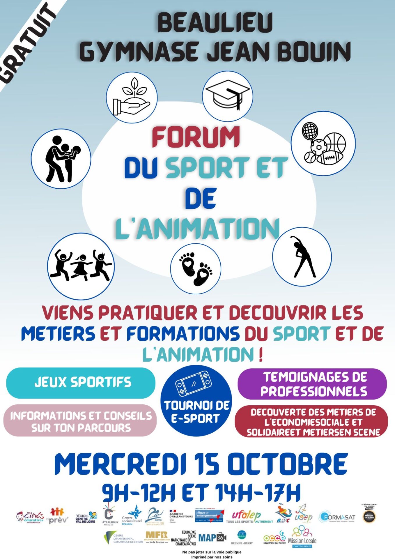 Mercredi 15 octobre prochain, au gymnase J. Bouin à Chateauroux, l’USEP 36 sera présente au Forum des métiers du sport et de l’animation, organisé dans le cadre de la cité éducative.